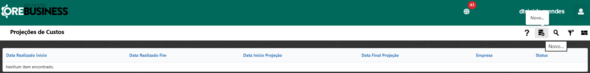 Para criar a projeção o usuário deverá clicar no botão de novo .